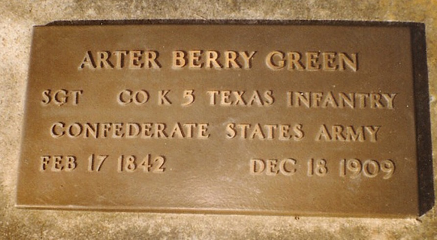 Arter Berry (A.B.) Green was born on February 17th, 1842. He was appointed the Adjutant for the Ike Turner Confederate Veterans Camp No. 321 upon its inception and held that position until the day he died on December 18th, 1909. A.B. was buried in Forest Hill Cemetery which is located in Livingston, TX. “Arter” is primarily a surname, not a given name, and it’s a variant of the name Arthur. It’s believed to have originated in England and Wales, likely influenced by the Gaelic form of Arthur, Artair. The name “Arthur” itself has various possible meanings, including “bear” or “strong man”.