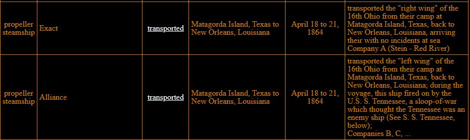 After a second days layover, the Texans boarded the steamer Lockwood and proceeded to Mobile, AL. After the Civil War, the Steamer Lockwood was involved in a significant disaster on the Mississippi River (see article).
