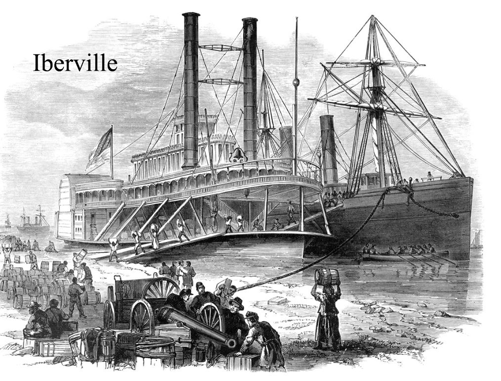 The Iberville, a sidewheel packet boat, was built in New Albany, Indiana in 1859 at the Humphrey & Dowerman Shipyard. Most famously, the steamboat Robert E. Lee was built there in 1866. I worked at Jeffboat Shipyard in Jeffersonville, IN, which is only (6) miles from New Albany. I never realized that there was a shipyard in New Albany. The Iberville was seized by the Union during the Civil War and pressed into service as a transport vessel. The Iberville experienced several encounters during its service as a Union transport, including running the gauntlet of Confederate batteries and guerrilla attacks. Later in the war, during the 1863 Siege of Port Hudson (Louisiana), the Iberville served as a hospital ship. After a fire, the Iberville was laid up in New Orleans in 1866. The Iberville was rebuilt and continued to operate, primarily on the New Orleans-Bayou Sara route. Bayou Sara is located on the Mississippi River, north of Baton Rouge.