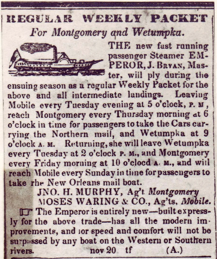 On Thursday May, 11th 1865 the men boarded the steamer Groesbeck. The steamer was fully loaded with supplies from Mobile, so the soldiers had to unload the vessel before departing to Mobile. To their dismay the Texans were ordered ashore at Selma, AL, by Union officers, to make space for a regiment of United States Colored Troops (USCT). “We protested, of course, and bitterly, against what some of our men denounced as a regular ‘Yankee trick,” wrote Captain W.T. Hill of the 5th Texas, “but our protest was unheeded, and we had to wait at Selma until the next day.”