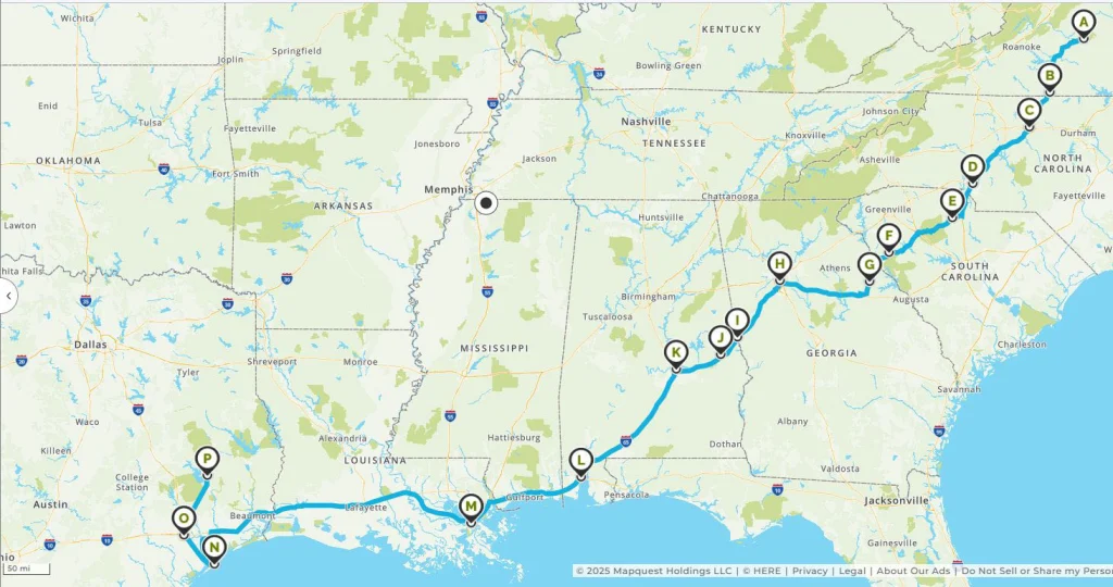 Montgomery, AL to Mobile, AL – 169.9 miles